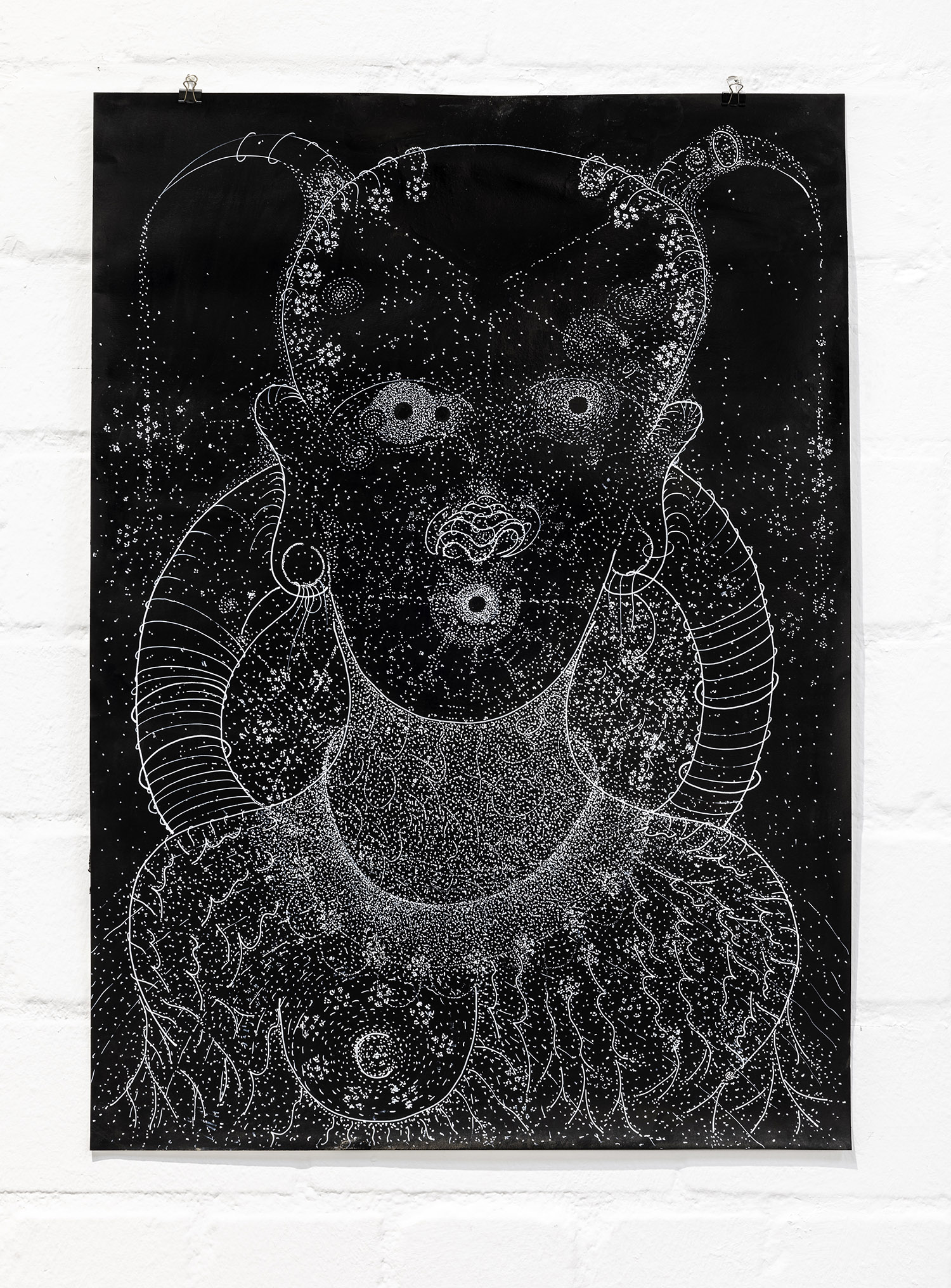 NIGHT & LIGHT zeigt fünf Positionen zeitgenössischer Kunst, die sich jeweils mit der Farbe Schwarz in Malerei,