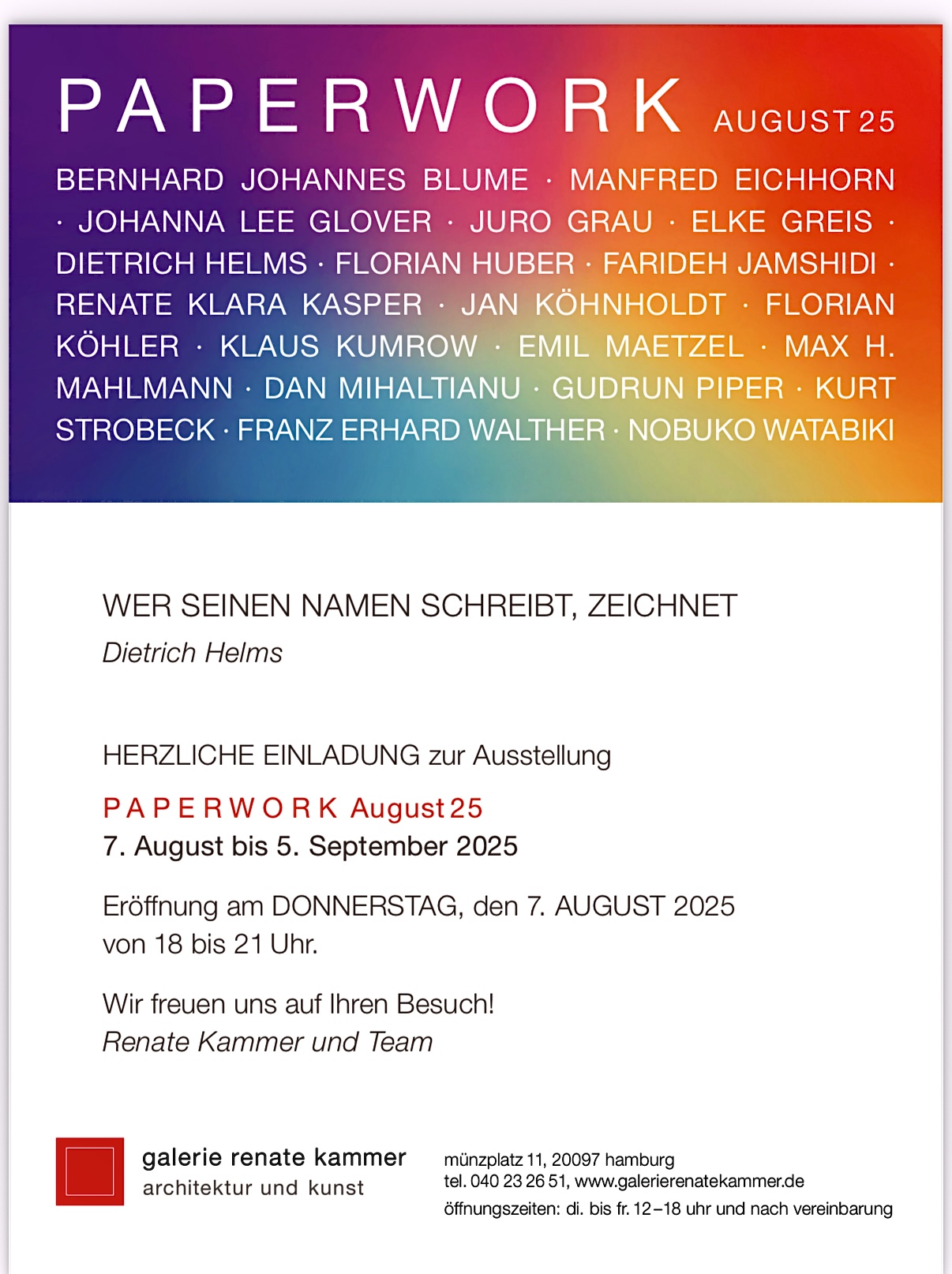 BERNHARD JOHANNES BLUME / MANFRED EICHHORN / JOHANNA LEE GLOVER / JURO GRAU / ELKE GREIS / DIETRICH HELMS / FLORIAN HUBER / FARIDEH JAMSHIDI / RENATE KLARA KASPER / JAN KÖHNHOLDT / FLORIAN KÖHLER / KLAUS KUMROW / EMIL MAETZEL / MAX H. / MAHLMANN / DAN MIHALTIANU / GUDRUN PIPER / KURT STROBECK / FRANZ ERHARD WALTHER / / NOBUKO WATABIKI