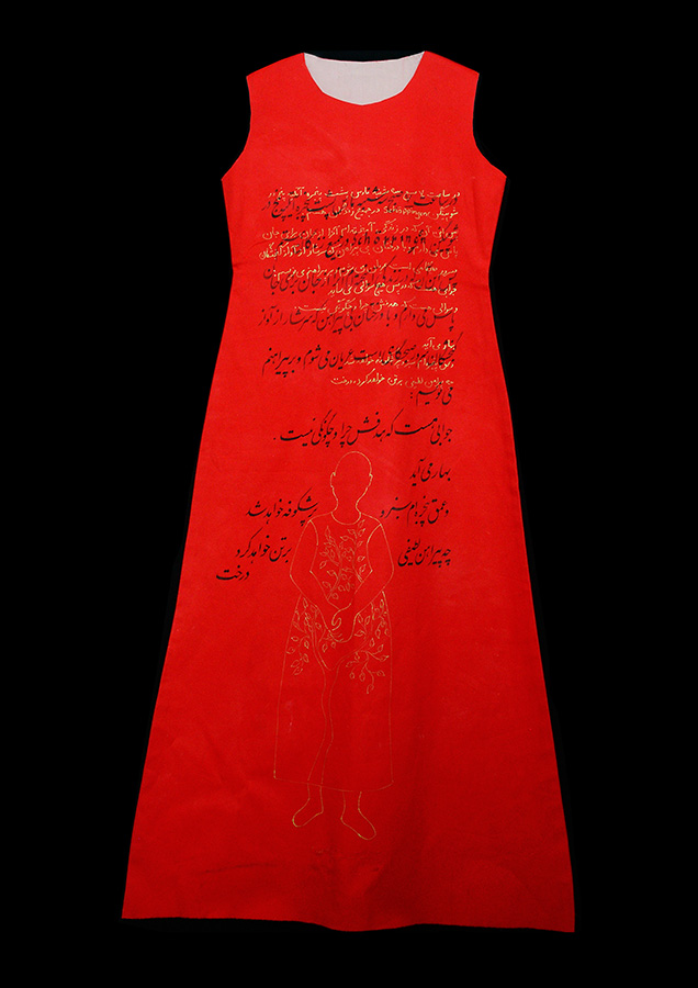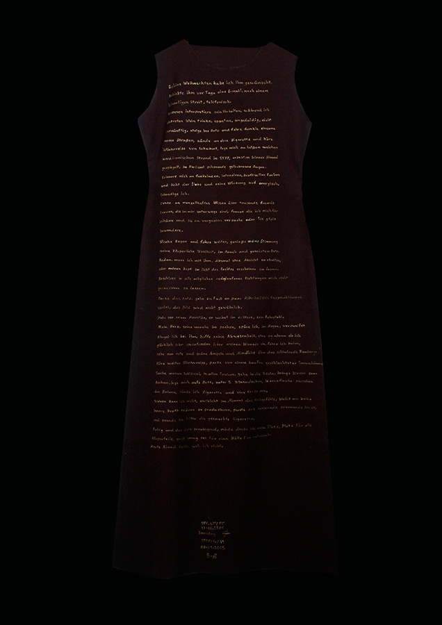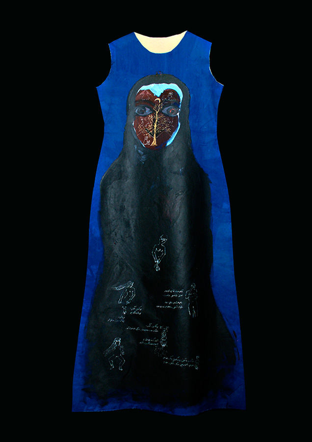 Dresses: , smoothed-over paint, sewn, silkscreened, painted, labeled, inscribed, torn, cut and perforated