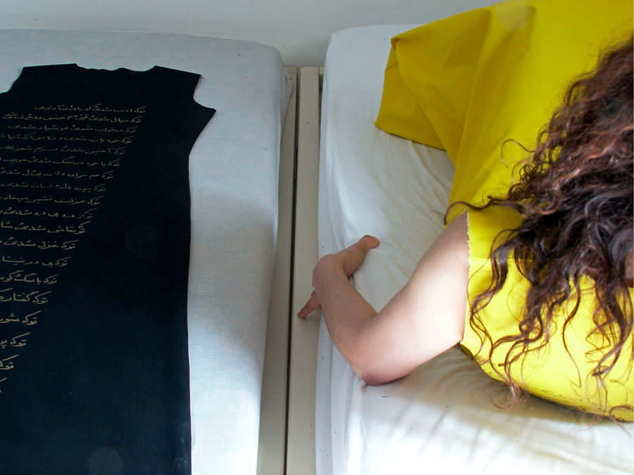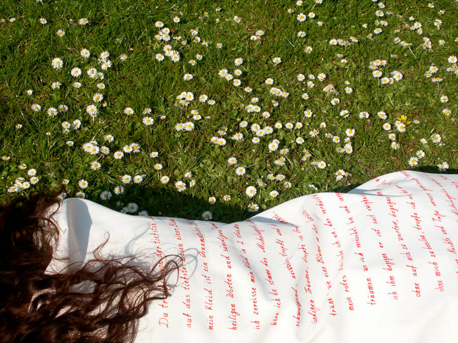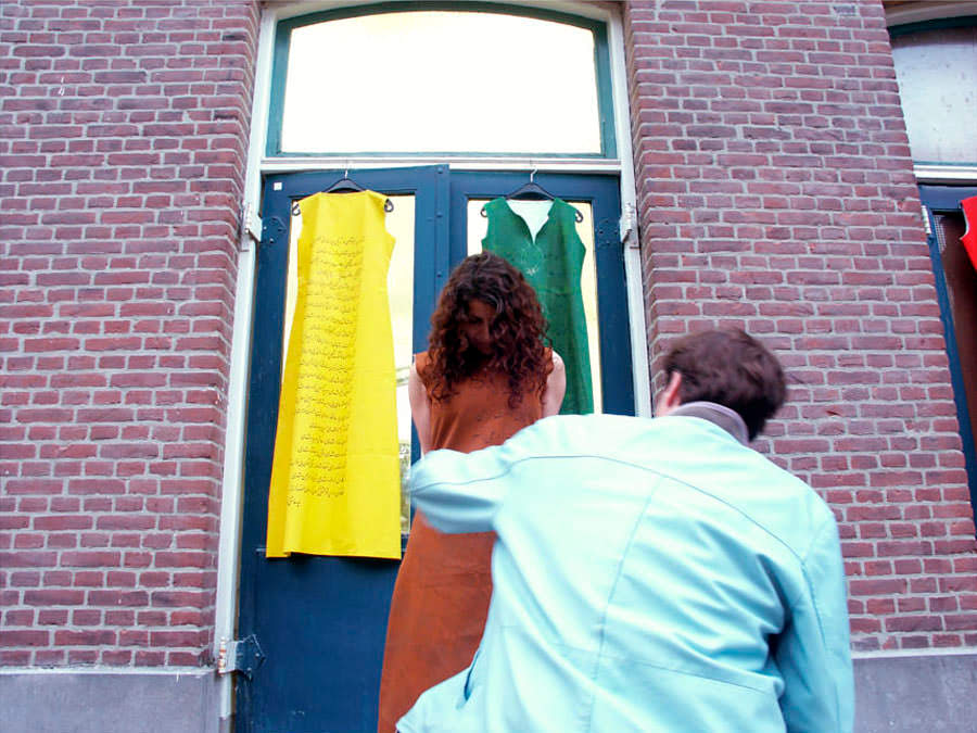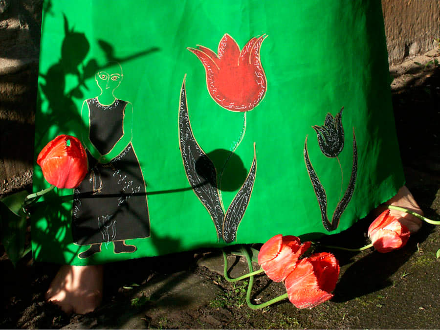 Jede Woche werden sieben Kleider in sieben festgelegten Farben, je nach Wochentag von mir genäht und bemalt.